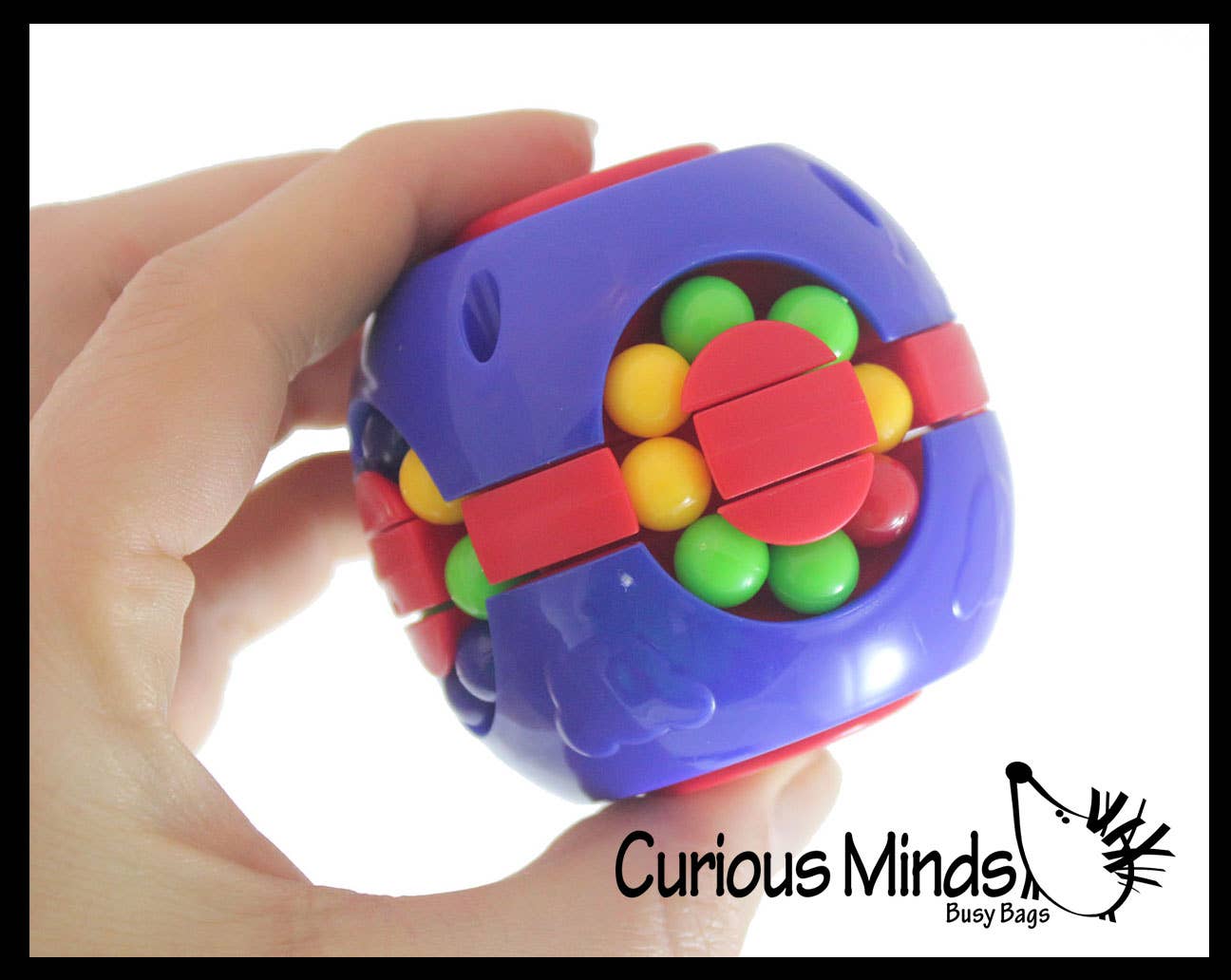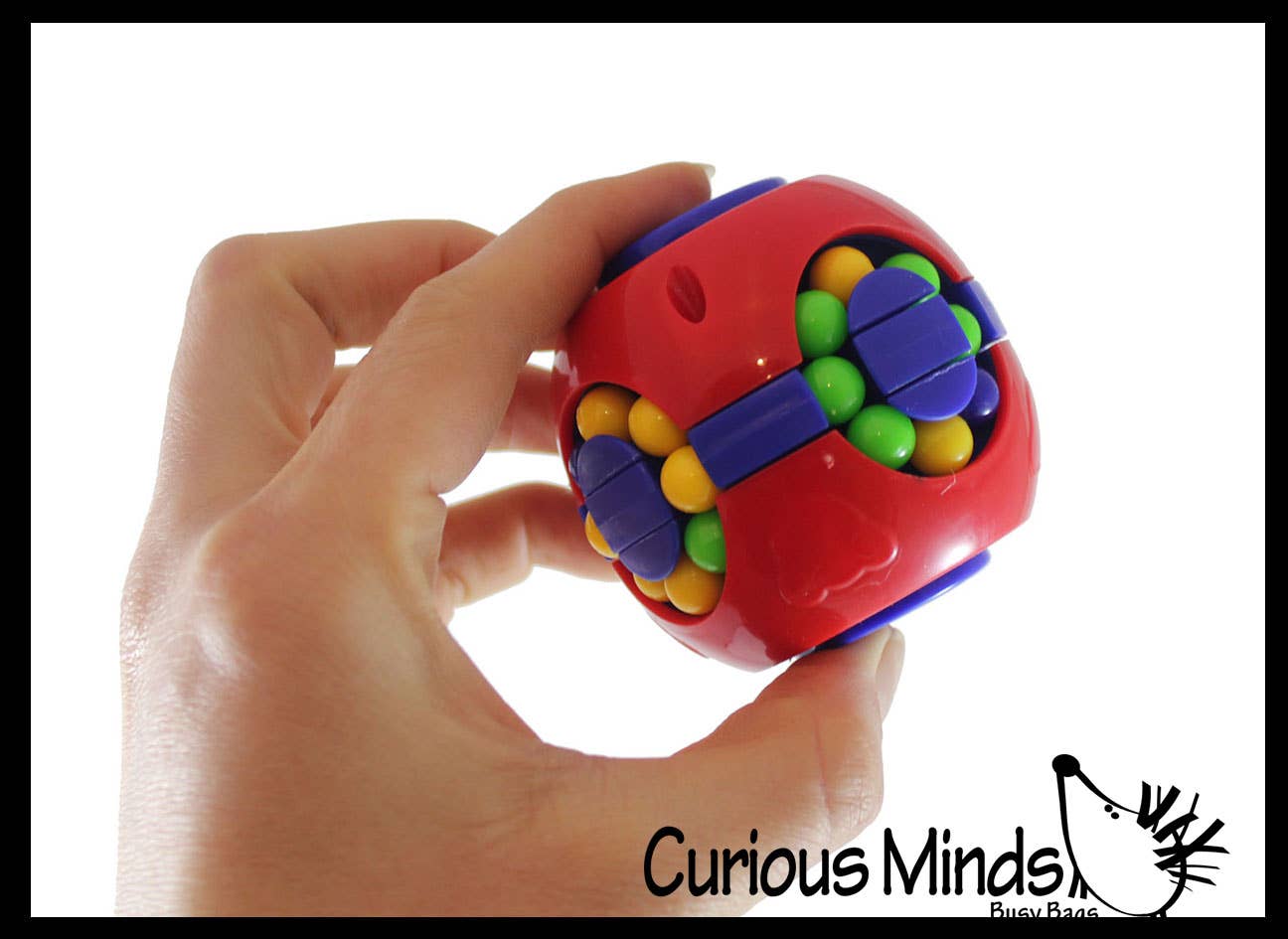 Meet your new favorite pocket-sized challenge! This clever 2-in-1 fidget combines spinning satisfaction with brain-teasing puzzle fun. Featuring dual red spinners on opposite sides and colorful rolling balls on the remaining faces, it's designed to keep your hands and mind engaged. Twist, spin, and strategically move the center mechanism to unscramble the colored balls back to their matching sides—it's trickier than it looks, which makes solving it even more rewarding. Compact at 2.25" x 2.25", it's the perfect companion for school, work, travel, or any moment you need a mental break. Simple enough to fidget with, challenging enough to actually puzzle over.